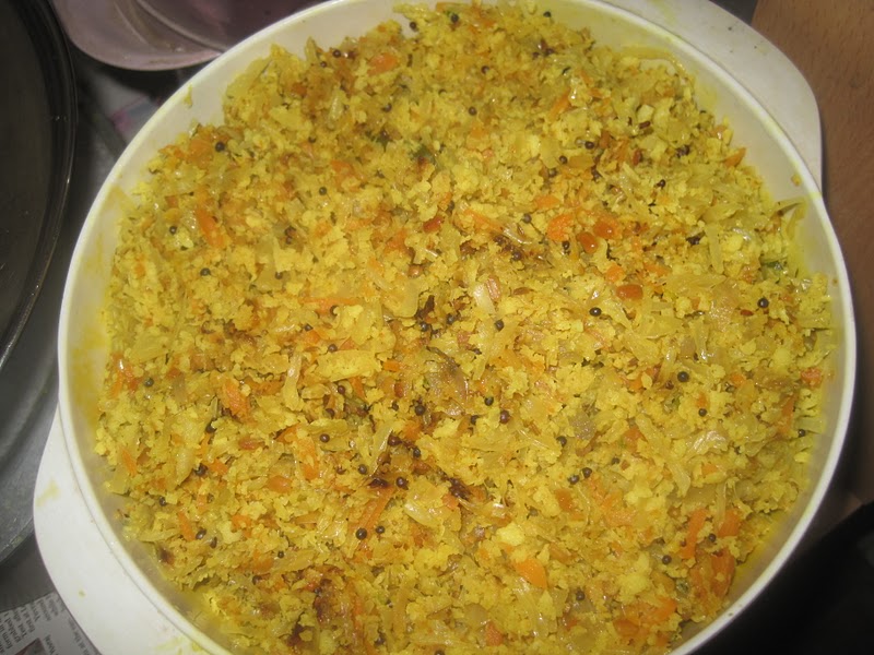 3. Add the grated cabbage, salt and sliced onions. Saute well for 1-2 min.
