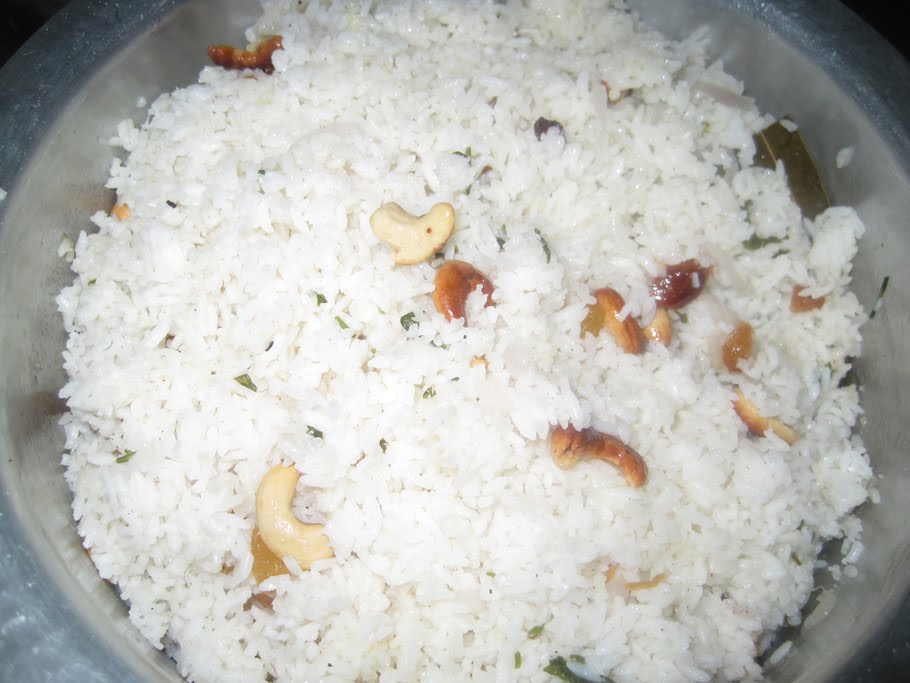 8. Add this to the rice and mix slowly so that the cashes spread evenly.