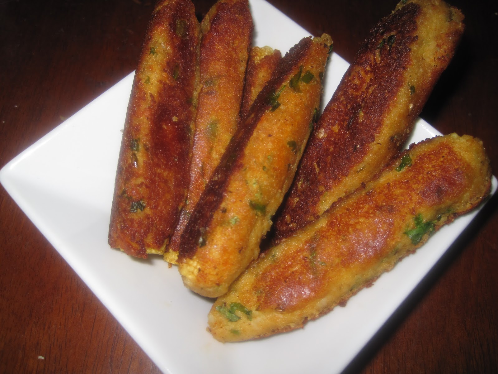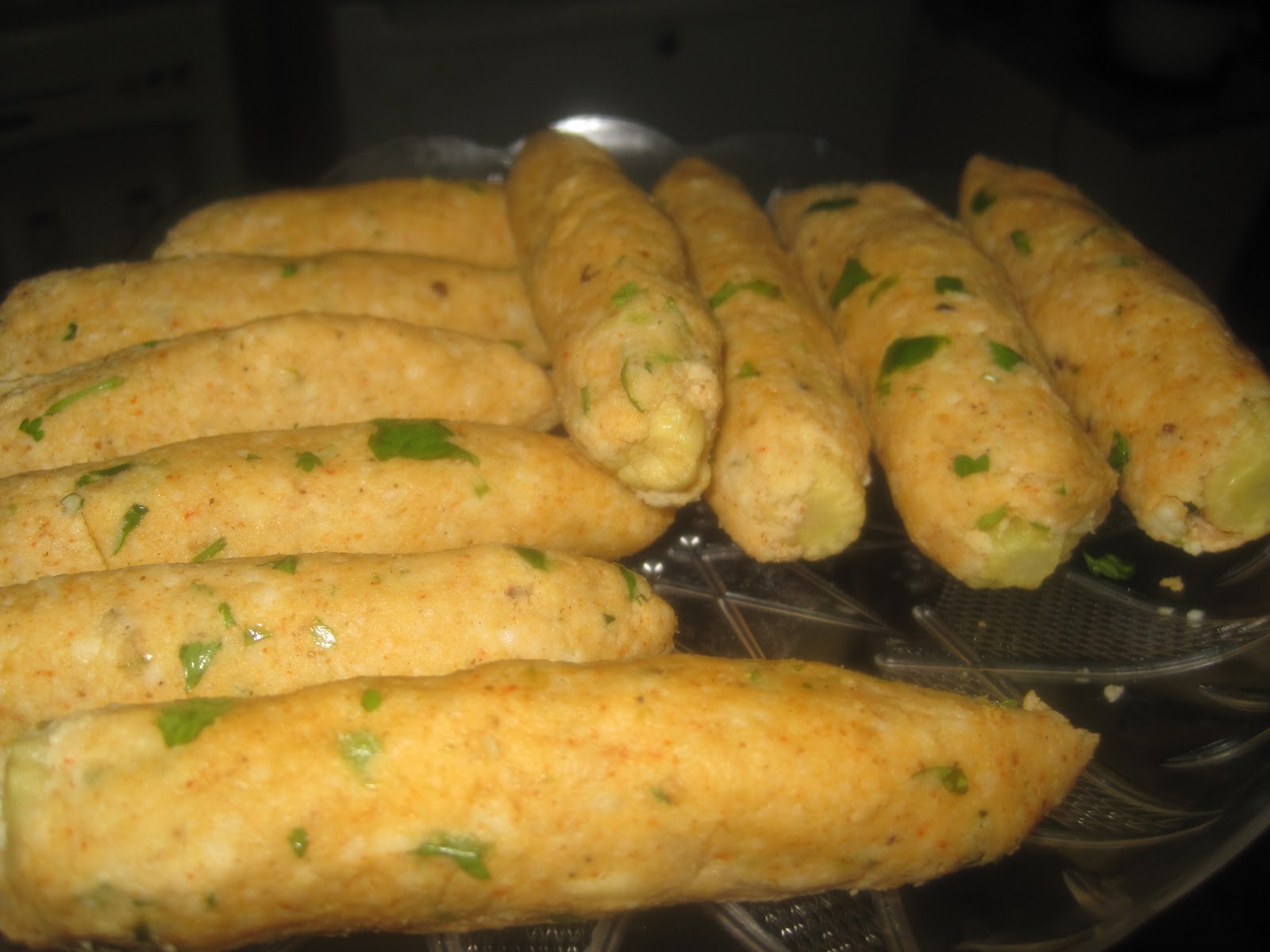 8. Take the babycorn and take one portion os paneer mix and stick it around the babycorn cob. (It will look like a cigar 🙂 ) . Repeat the same with other babycorn