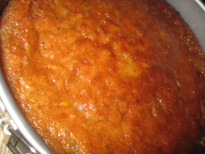 11. Spoon the syrup over the cake, allowing it to soak in.