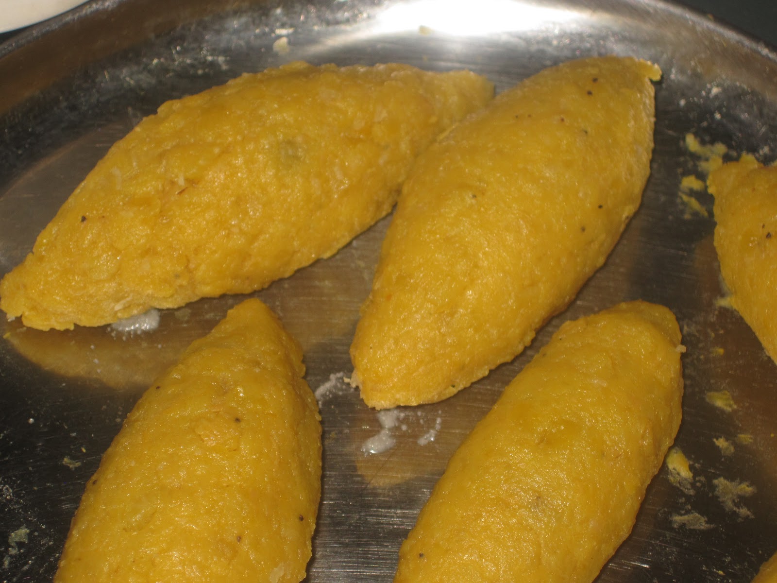 The very first time i heard about Unnakai from LJ. I used to wonder how does it taste. And then I had to wait for months. This is not available in any of the shops or restaurants over here. One fine day she only prepared this and got it for me. It was soo yumm. It was a kinda surprising for me to see steamed and mashed plantain can form a coating like potatoes.