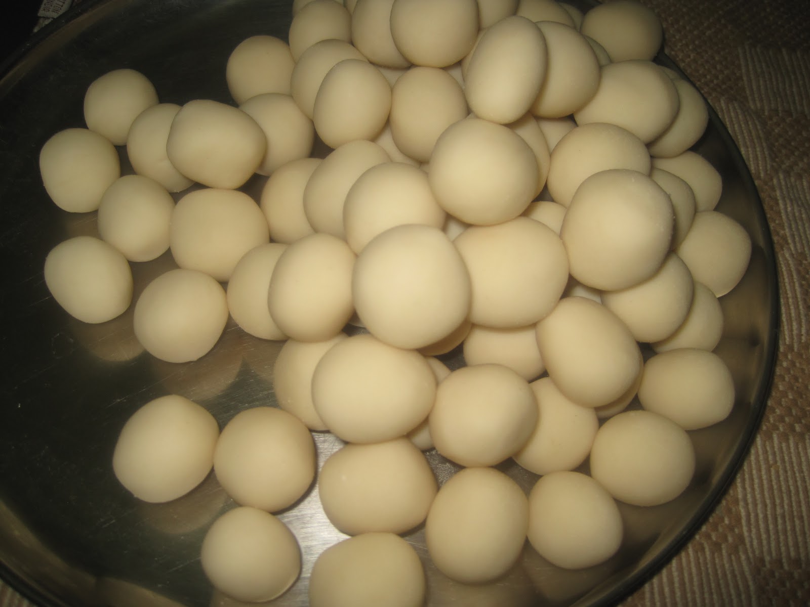 12. Keep aside. repeat the same with all the rice balls. You can see the impression of the stem on one side of each rice ball ๐Ÿ˜€