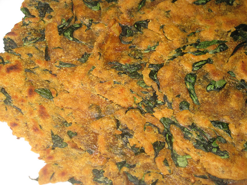 - Heat pan on medium to high heat, cook the rolled out theplas smearing oil as required on both side and until brown spots appear on the theplas.