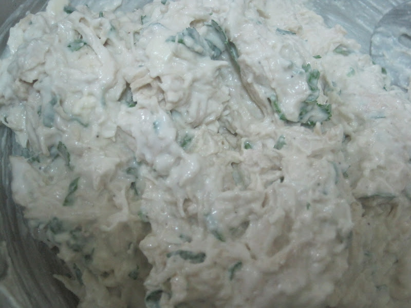 8. In a large bowl mix chicken, parsley/ coriander leaves and whisked cream cheese- mayonnaise mixture