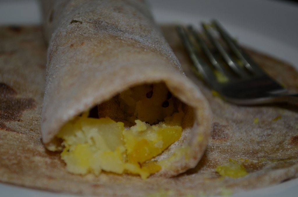 Now roll and serve. If you are planning to take it work, wrap it nicely with a foil. It will be soft and tasty after 4 hours also 🙂