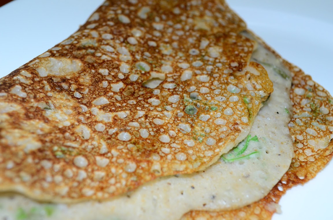 8. Drizzle oil over the dosa and allow to cook one side till golden brown. (No need to flip)