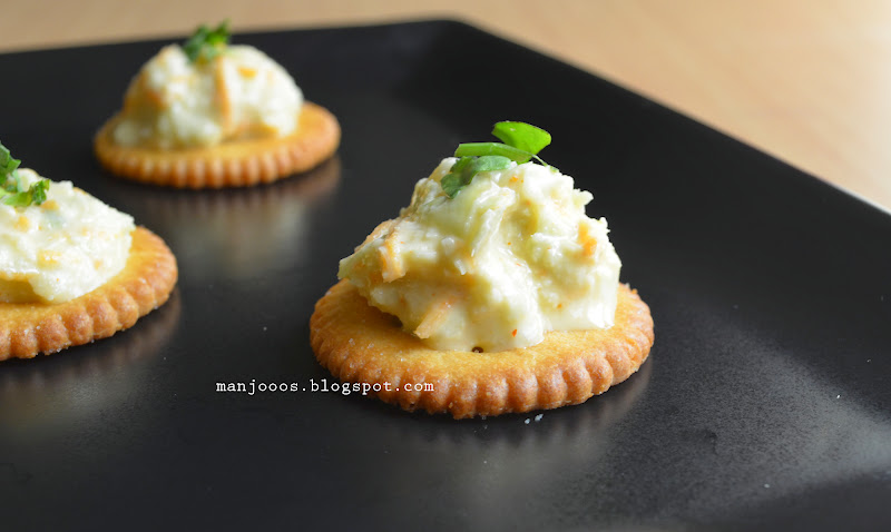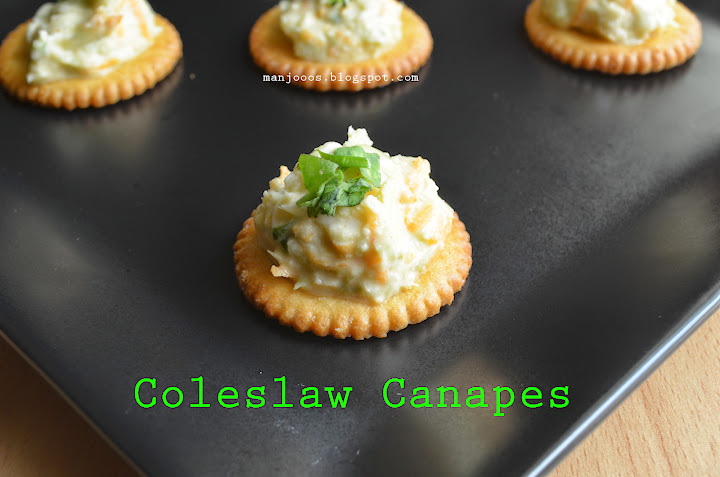 Canapes are a very quick treat, if you have Monaco biscuits handy at home. There is no particular measurement for the amount of toppings you could keep. Just make sure the toppings is not watery. It should be thick or creamy.