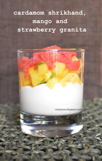 As the name says, this recipe has only Shrikhand, Fresh fruits and Granita. The flexibility of this recipe is we could choose the fillings and flavors as we like…