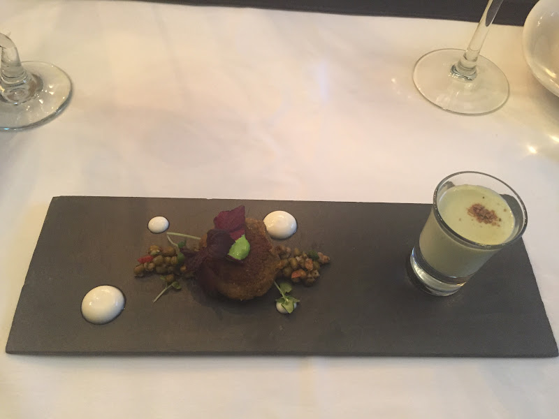 Amouse Bouche : Moong dal galouti with an Avocado Thandai shot